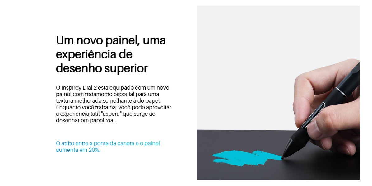 Design totalmente novo: graças ao design simétrico, o Inspiroy Dial 2 é perfeitamente adequado para usuários destros e canhotos. A grande área ativa de 10,5 x 6,5 polegadas é ideal para uso com monitores grandes ou múltiplos.
