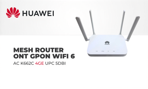 Especificações Técnicas. Modelo: F. ONT GPON WIFI 6 AC HUAWEI MESH ROUTER K662C 4GE UPC 5DBI Código referência: 75681