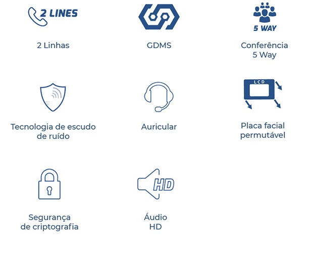 - Suporta 2 linhas e 4 contas SIP