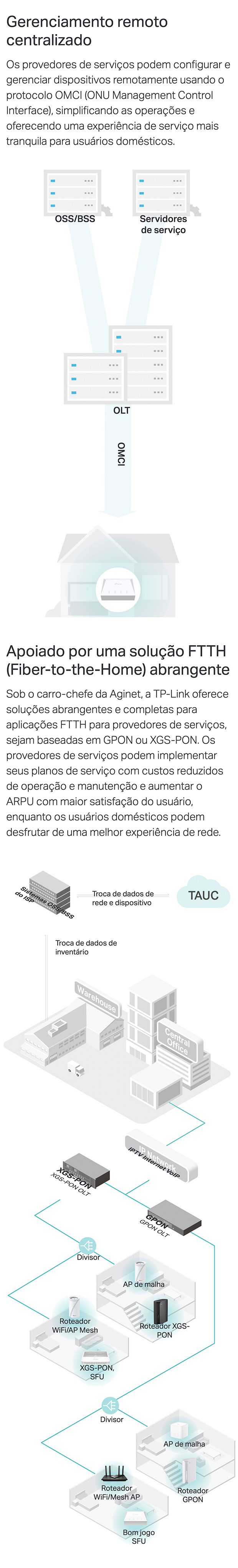 Compatível com OMCI para configuração e gerenciamento remotos. Ele também suporta gerenciamento local usando WebGUI.