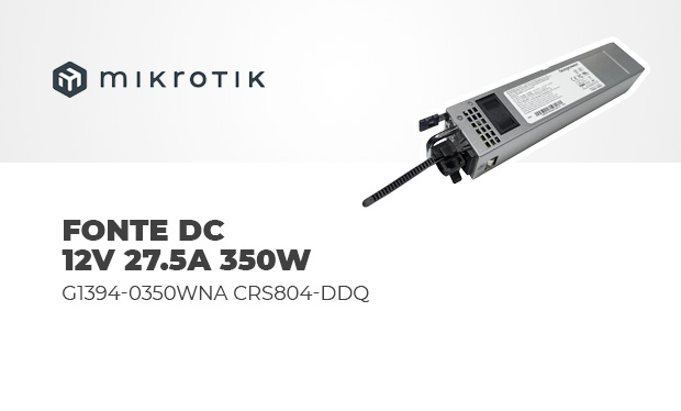 A MikroTik G1394-0350WNA é uma fonte de alimentação redundante (hot-swap) de 350W projetada especificamente para o switch de alto desempenho CRS804-DDQ (também conhecido pelo código de modelo CRS804-4DDQ-hRM).