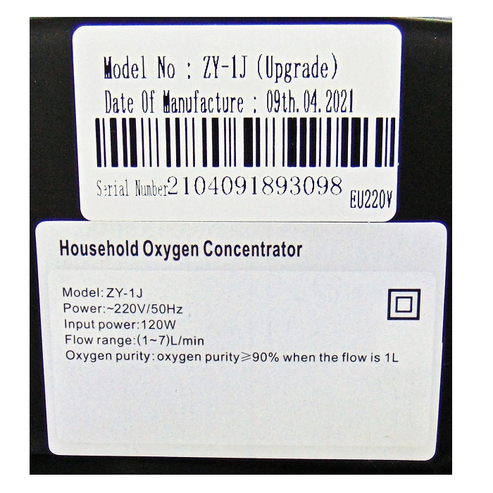 - Concentração de 93% ± 3% no fluxo de oxigênio de 1L