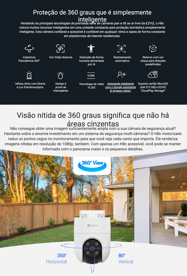 - Compatível com cartões micro-SD (até 512 GB) e armazenamento EZVIZ² CloudPlay