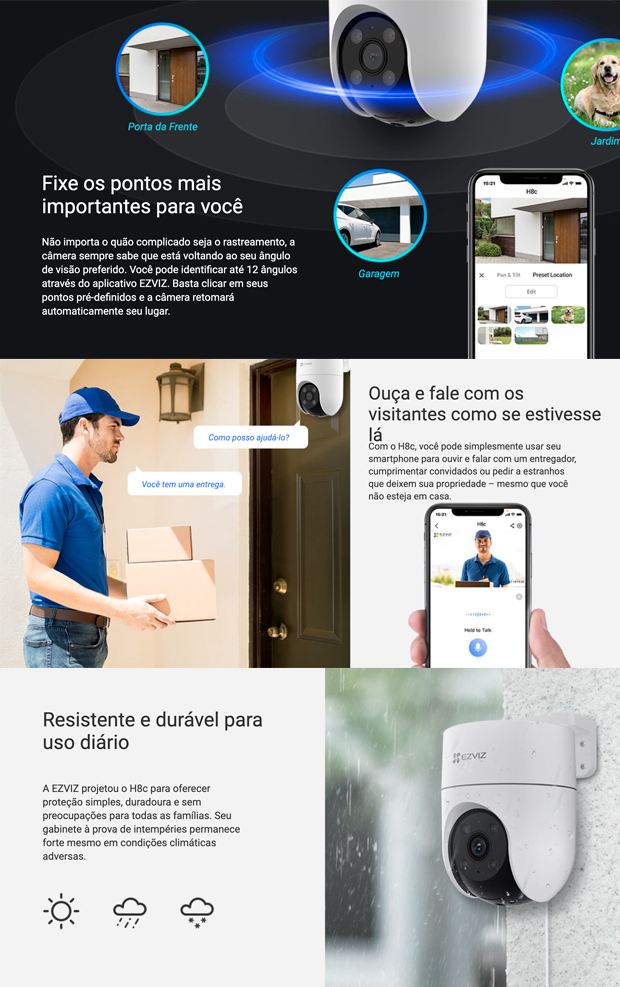 A câmera H8c é compacta e vem com inúmeros recursos inteligentes para proteção doméstica inteligente. Esta câmera acessível é confiável em todos os tipos de condições ambientais e funciona perfeitamente em plataformas domésticas de internet.
