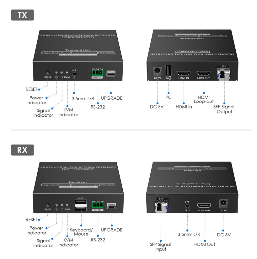 F. HDMI 40KM FIBRA EXTENDER 4K 60HZ SMF-MMF PTP IU1981KVM IU