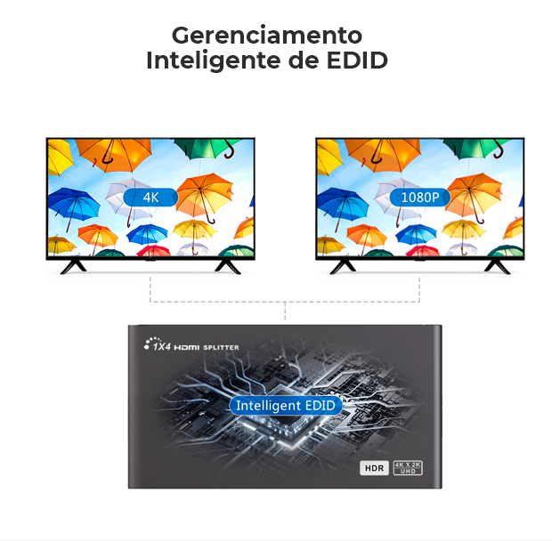 - Gestão EDID: Suporta gerenciamento EDID inteligente, disponível para exibir diferentes monitores de resolução ao mesmo tempo