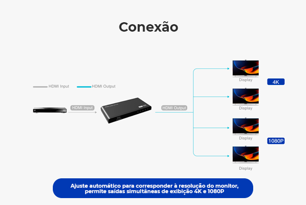 - Resolução HDMI 480i/480p/576i/576p/720p/1080i/1080p/ 4K×2K@24/25/30/60Hz