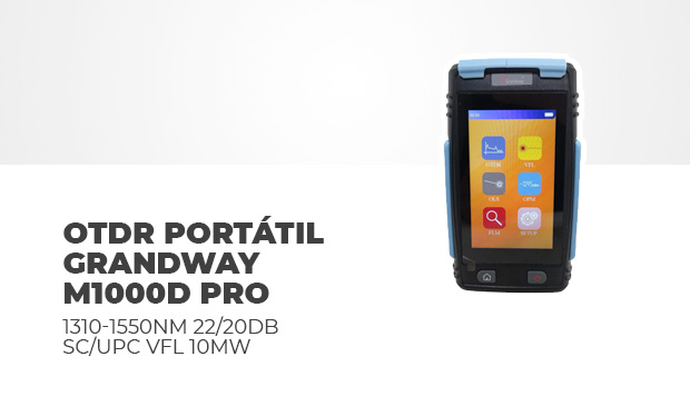 O OTDR Grandway M1000D PRO é um equipamento portátil multifuncional para testes, instalação e manutenção de redes de fibra óptica. Projetado para uso profissional, integra diversas funções essenciais em um único dispositivo, garantindo praticidade, precisão e confiabilidade em trabalhos de campo.