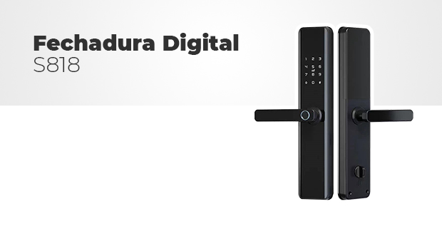 FECHADURA DIGITAL S818 WIFI TUYA/USB/CARTÃO/CHAVE PRETO