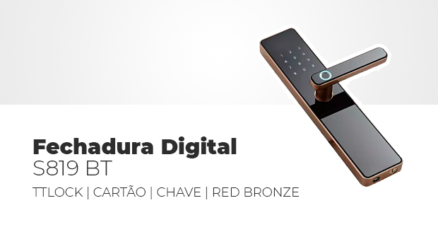 Modelo: FECHADURA DIGITAL S819 BT TTLOCK/CARTÃO/CHAVE RED BRONZE
