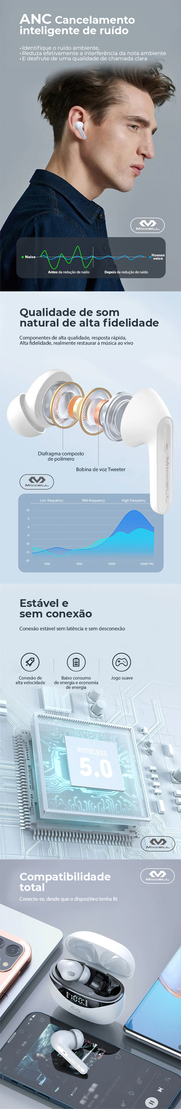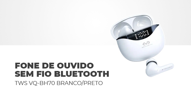 Modelo: FONE DE OUVIDO SEM FIO BLUETOOTH TWS VQ-BH70 BRANCO/PRETO