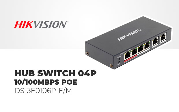 Modelo: HIKVISION HUB SWITCH 04P 10/100MBPS POE DS-3E0106P-E/M