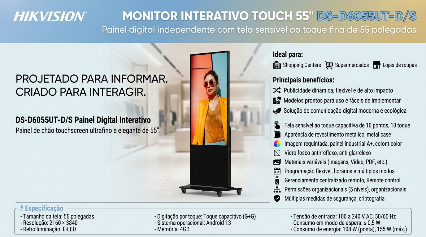 HIKVISION MONITOR INTERATIVO TOUCH 55" DS-D6055UT-D/S