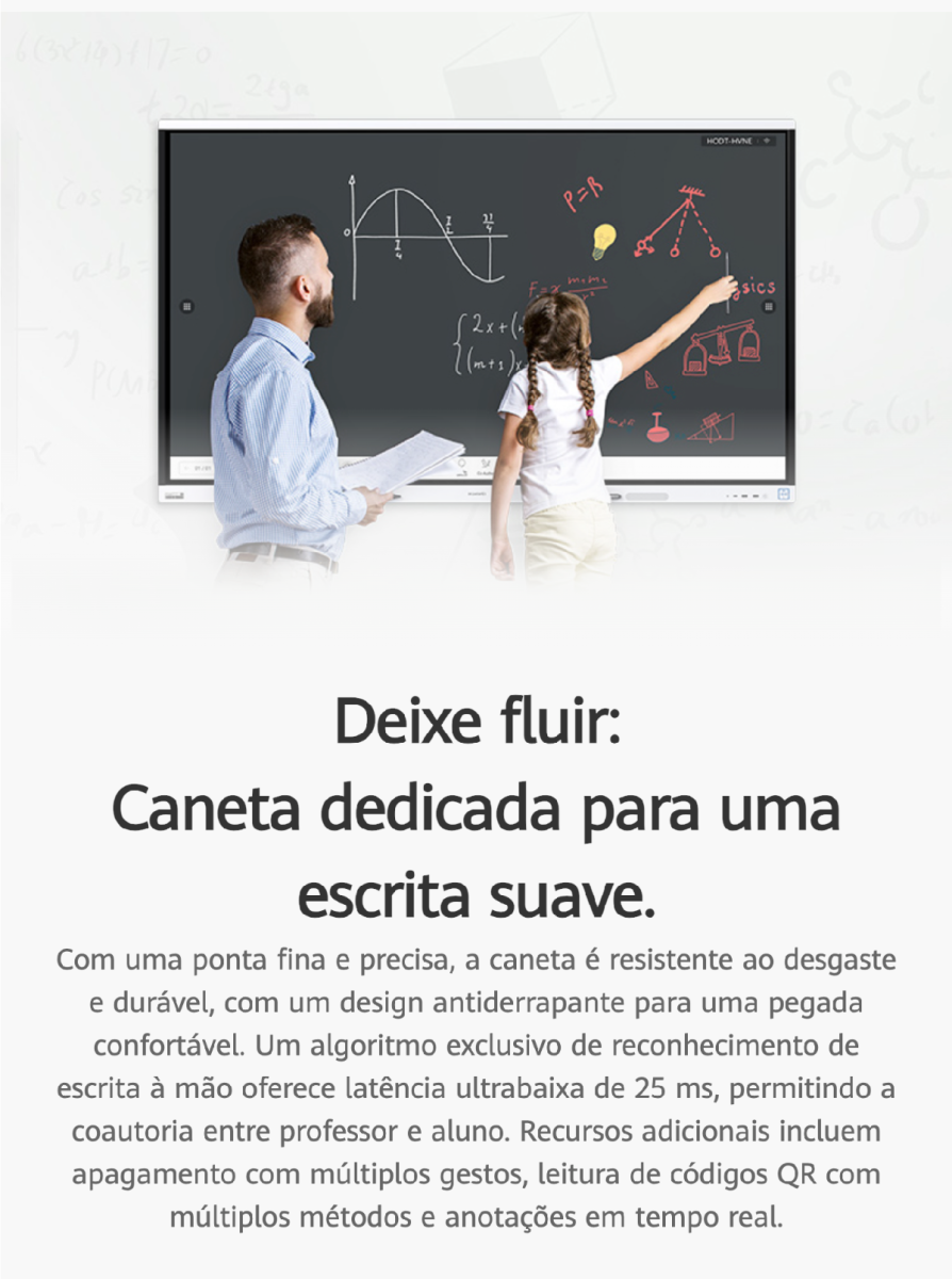 - Escrita: Latência ultrabaixa de **25 ms** com algoritmo exclusivo de reconhecimento de escrita à mão e caneta dedicada.