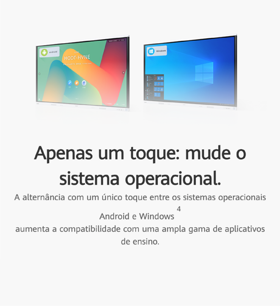 - Alternância com um único toque entre os sistemas operacionais Android e Windows&sup4; aumenta a compatibilidade com uma ampla gama de aplicativos de ensino.