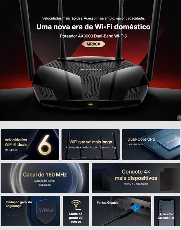 - Roteador AX3000 Wi-Fi 6 MR80X