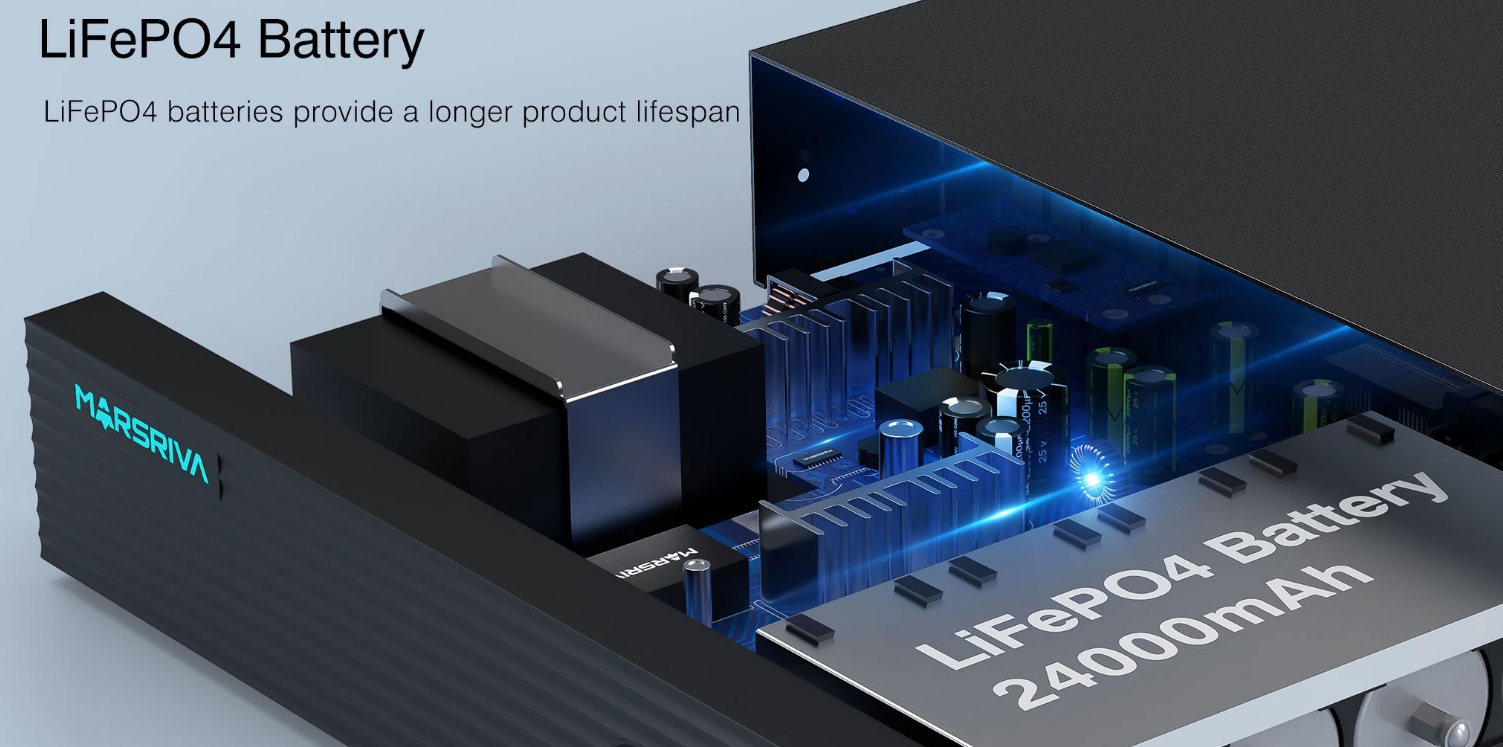 As baterias LiFePO4 proporcionam uma vida útil mais longa ao produto.