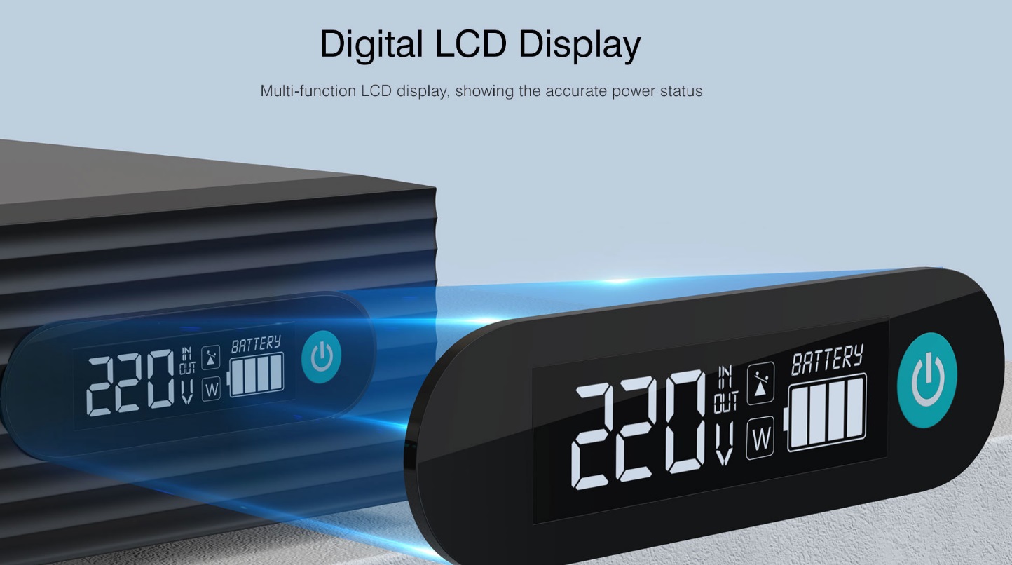 Visor LCD multifuncional, mostrando o status preciso da energia.