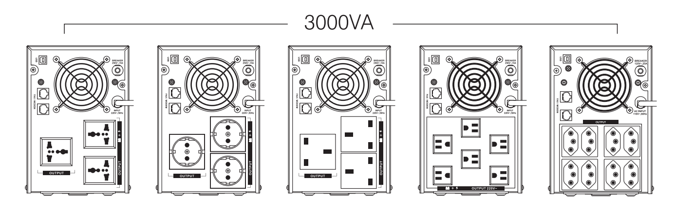 UPS Smart Line-Interactive 3000VA/1800W, versão LED, sem USB, bateria 12V/9Ah*4 com tomadas paraguai, cabo de alimentação BR. Entrada e saída 220V-240V 50/60Hz