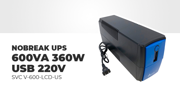 NOBREAK UPS SVC V-600-LCD-US 600VA 360W USB 220V