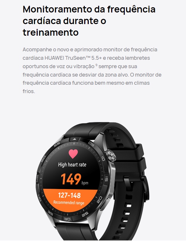 Monitoramento de frequência cardíaca de treinamento, gerenciamento de estresse, rastreamento de SpO2, rastreamento de sinais vitais