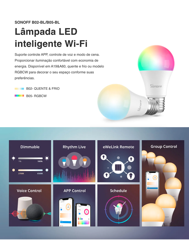 Marca: SONOFF SMART LAMPADA LED WIFI 120V 806LM B05-BL-A19