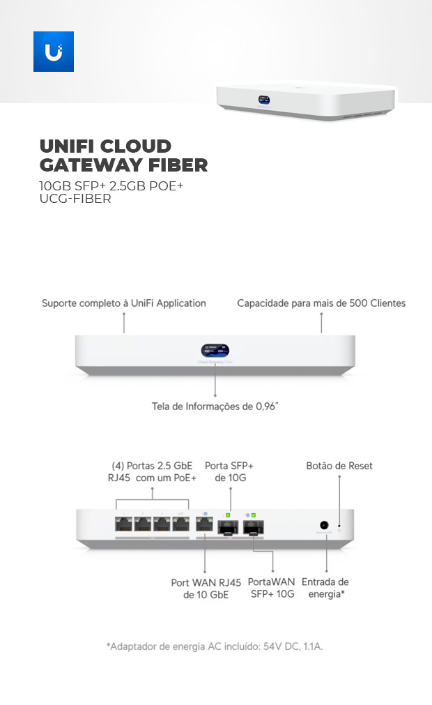 Modelo: UI. UCG-FIBER UNIFI CLOUD GATEWAY 10GB SFP+ 2.5GB POE+