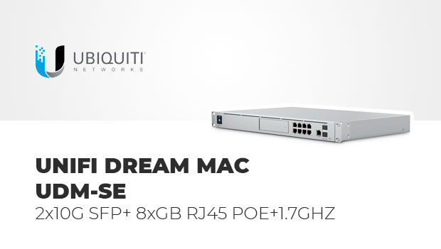 Modelo: UBNT UDM-SE UNIFI DREAM MAC. 2*10G SFP+ 8*GB RJ45 POE+1.7GHZ