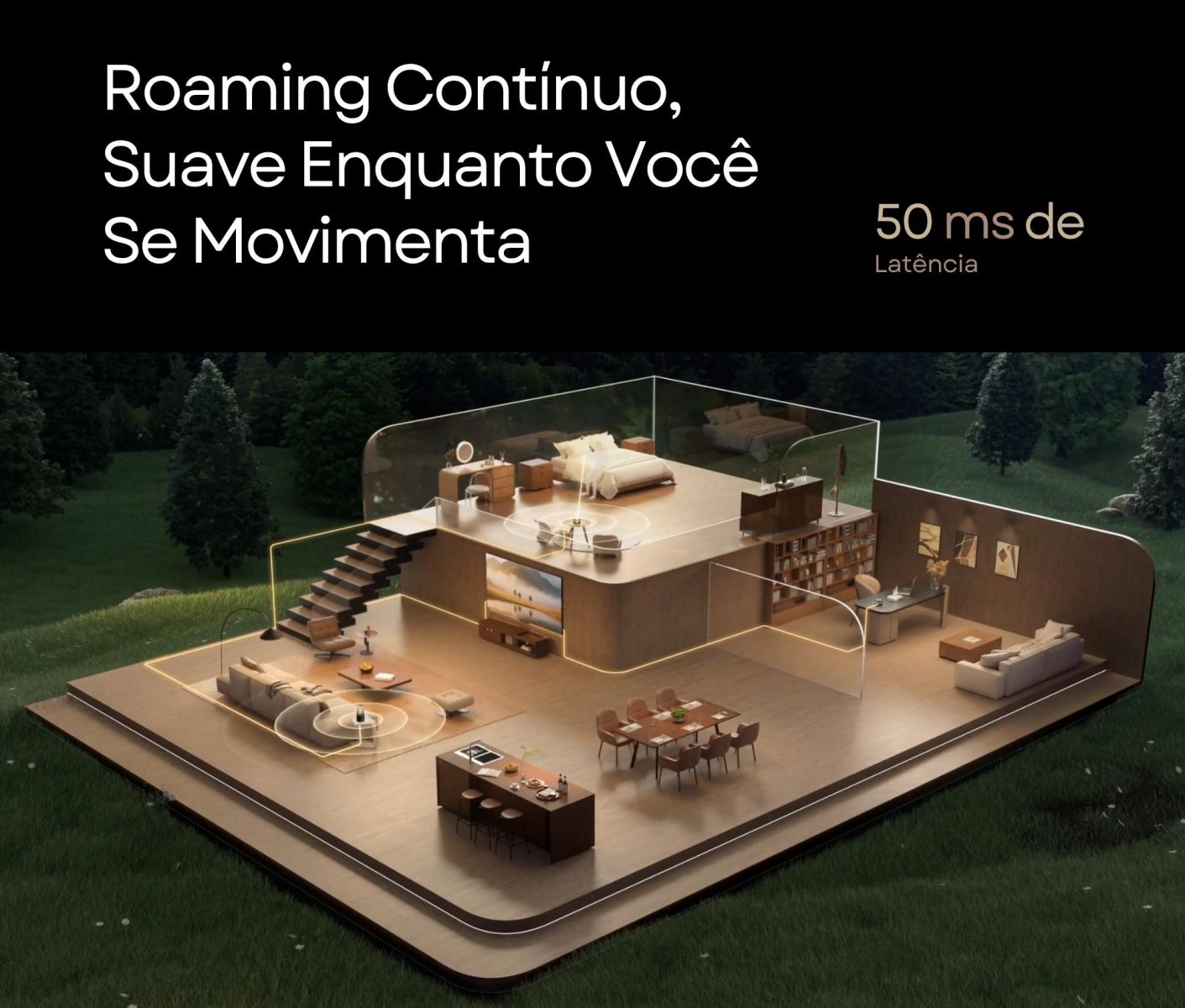 O HUAWEI WiFi Mesh X3 Pro possui uma antena transparente inédita, que emite um sinal robusto reforçado por um rastreamento dinâmico alimentado por algoritmos.