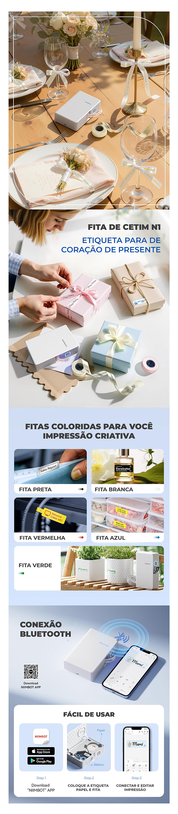 A NIIMBOT N1 (também conhecida como B18) é uma impressora de etiquetas portátil que utiliza tecnologia de transferência térmica para oferecer impressões duradouras e versáteis. Diferente das impressoras térmicas diretas comuns, este modelo permite a impressão colorida através do uso de fitas (ribbons) coloridas.