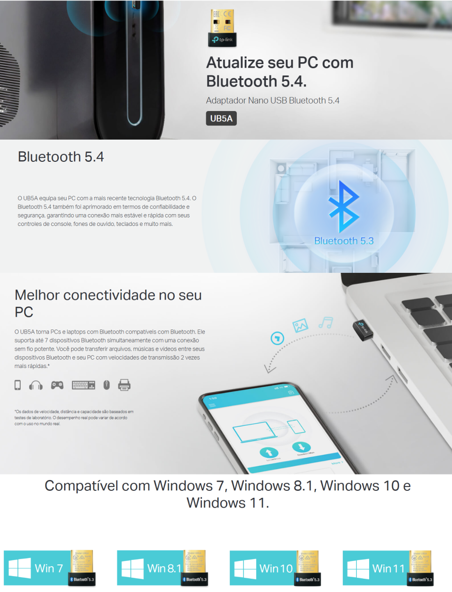 O UB5A equipa seu PC com a mais recente tecnologia Bluetooth 5.4. O