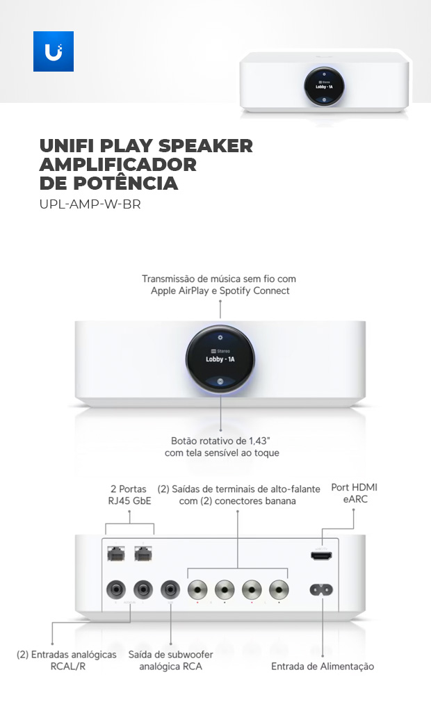 Modelo: UI. UPL-AMP-W-BR UNIFI PLAY SPEAKER AMPLIFICADOR DE POTÊNCIA