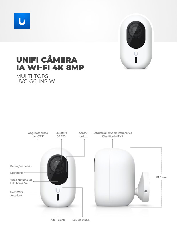 Modelo: UI. UVC-G6-INS-W UNIFI CAMERA IA WI-FI 4K 8MP MULTI-TOPS