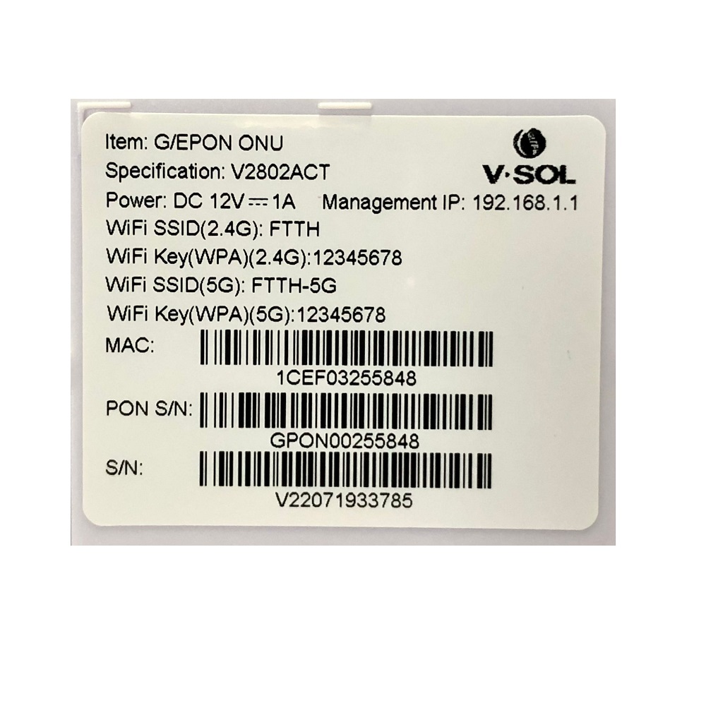 Modelo: F. ONU CATV WIFI GPON/EPON HIBR WIFI5 2GE PPPOE V2802ACT APC